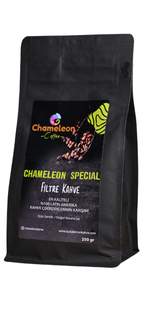 Gerçek bir kahve deneyimi için Chameleon Special. Özenle seçilmiş nitelikli kahve çekirdeklerinden oluşan özel harmanımızla, her fincanda zengin aromayı hisset.